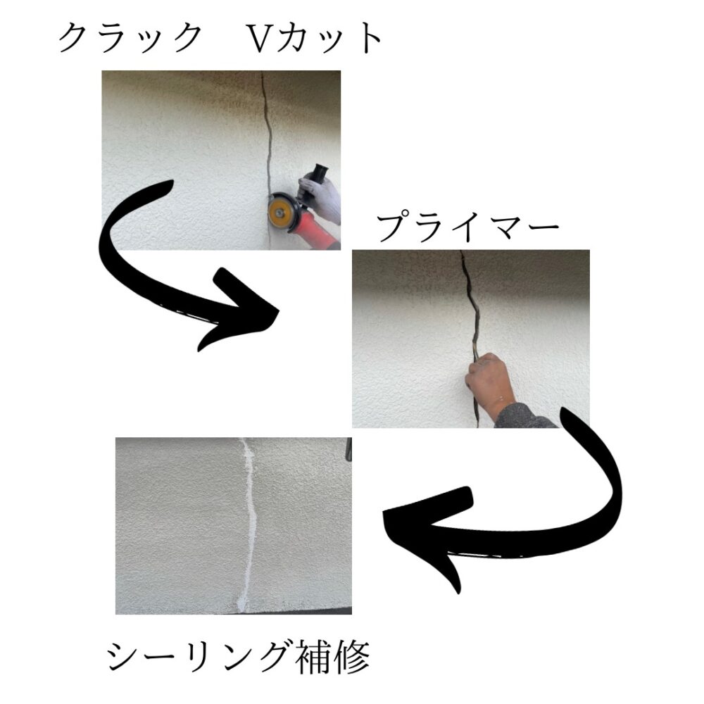 高圧洗浄外壁モルタル部:ひび割れクラック補修