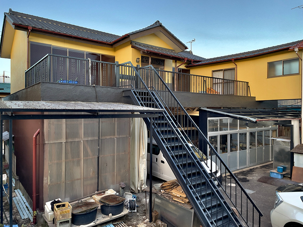 鉄骨塗装・鉄部塗装【サビ再発抑制工法】電動工具にてケレン作業→電動工具があたらない部分を手ケレン→マジックロンにて再度ケレン→サビ転換剤塗布→サビ止め→中塗り→上塗り