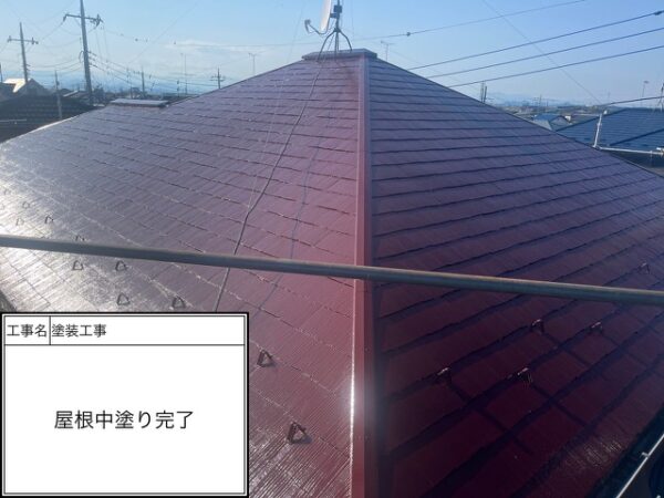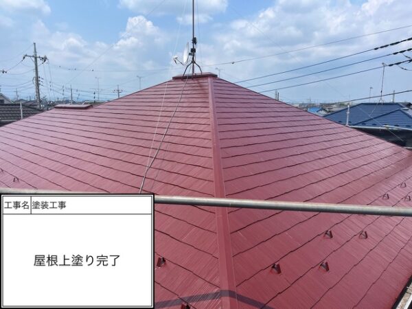 屋根塗装工事グレード:高耐久シリコン塗装使用塗料:関西ペイント塗料品名:アレスダイナミックルーフ 色:ローヤルレッド