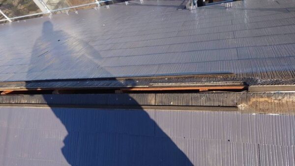※こちらの部分は中の板(貫板)が年数と共に傷んでいき板金を抑える釘などが抜け落ちグラグラ浮いてしまいそこから雨水の侵入や、強風により飛ばされる可能性が見込まれる箇所であり必要であれば行うべき工事となります。