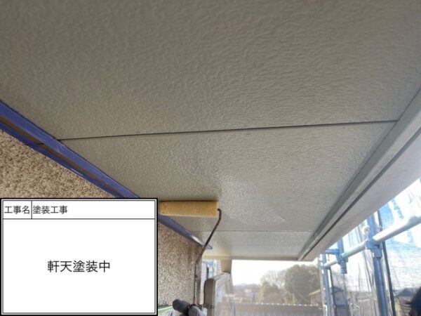 軒天の下塗りに使用したのはカチオンシーラーです。外壁・内部にも幅広く使われている塗料なだけあって浸透性・密着性に優れた塗料になります。