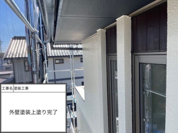 軒天に下塗りが充分に密着したからこのような美しい仕上がりが可能になります。