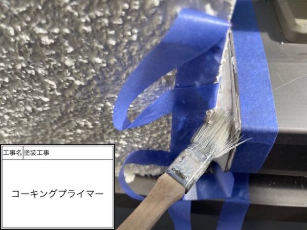 Vカットした部分にコーキングする前にプライマーを塗って行きます。