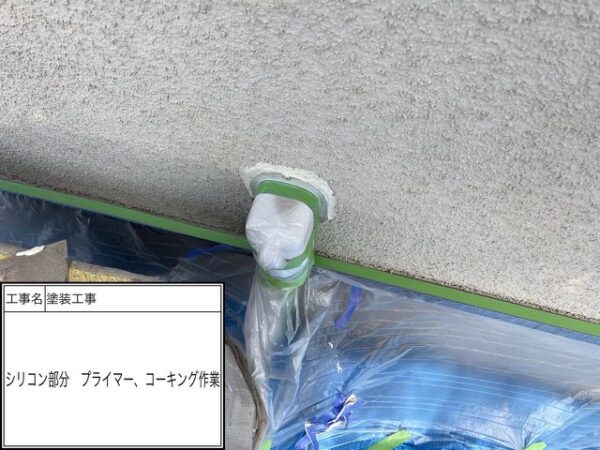 モルタルの外壁なのでいつ地震で雨漏れを起こすか分からないのでしっかりとコーキングの施工をして行きます。