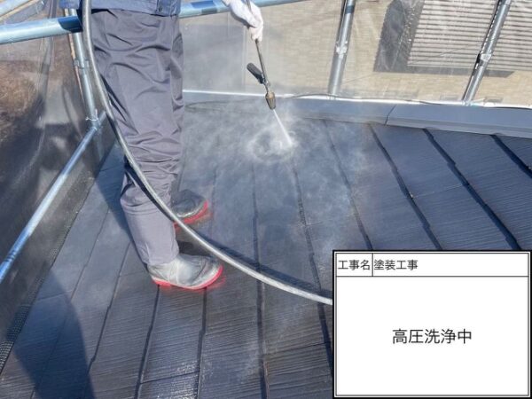 【屋根塗装・施工の流れ】屋根塗装工事グレード:遮熱無機塗装使用塗料:プレマテックス塗料品名:タテイルαサンクール 色:エコディープグレー