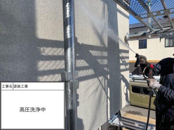 モルタルの外壁なのでっしっかりと洗浄を行い汚れを落として行きます。