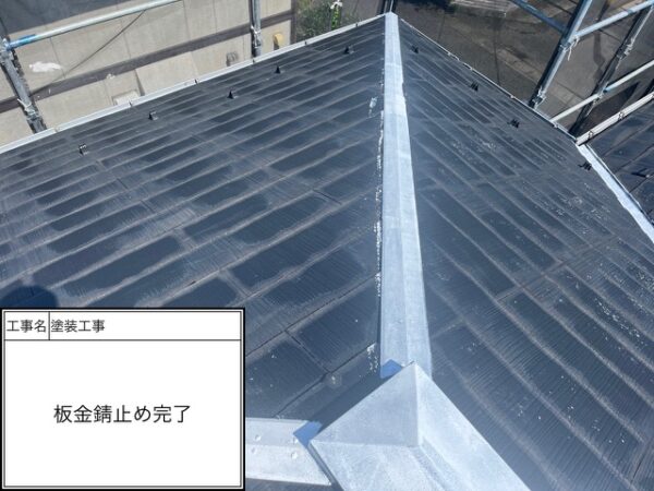 板金も屋根材を塗る前に錆止めを入れる事がポイント❕錆の再発防止、板金部分の耐久性強化を目的にしています❕