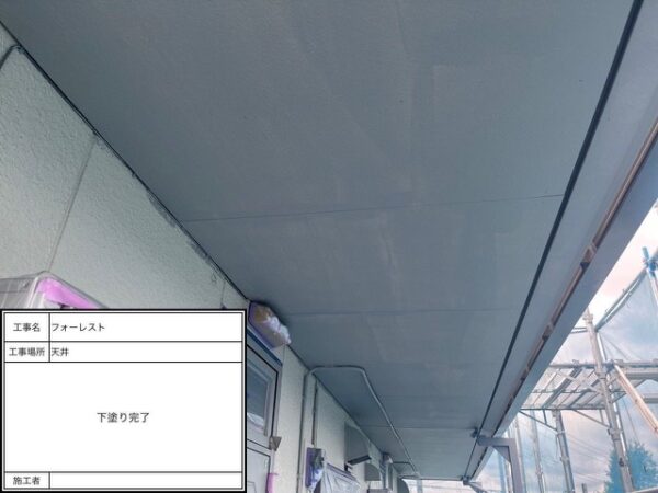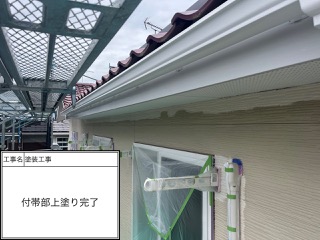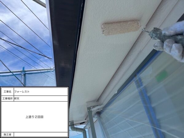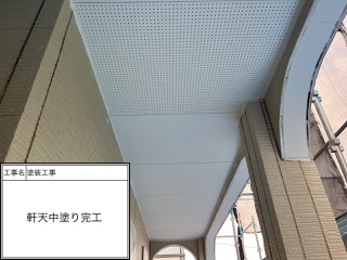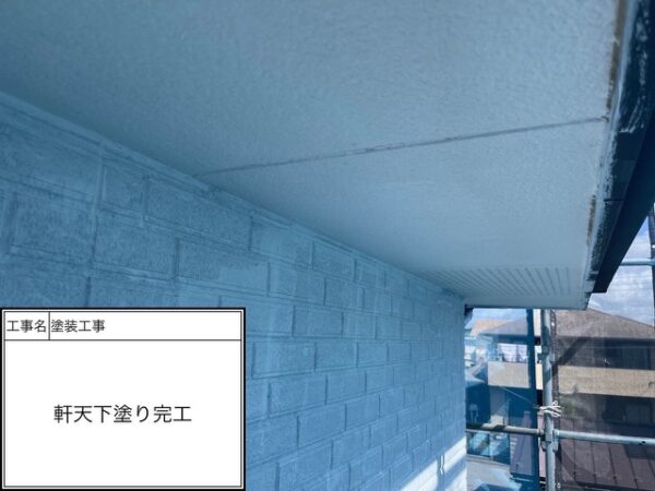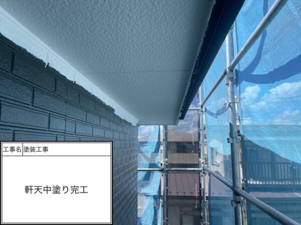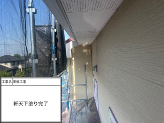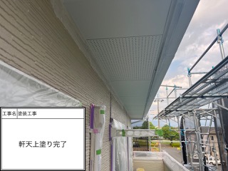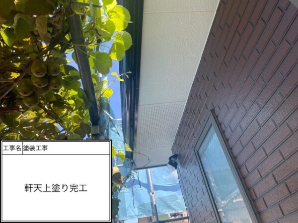 軒天の材料には防カビ性能が付いた塗料での塗装を施工しました。