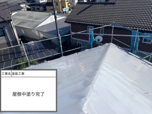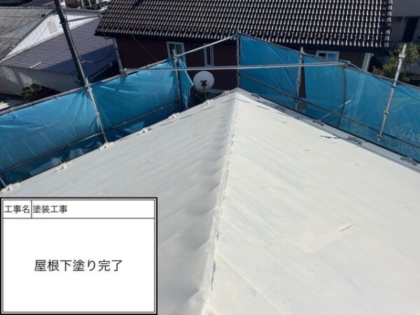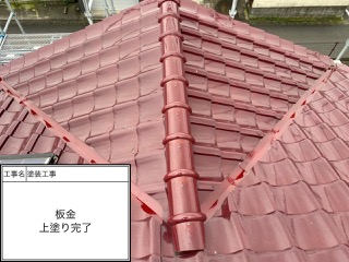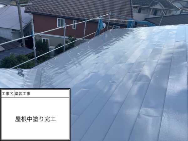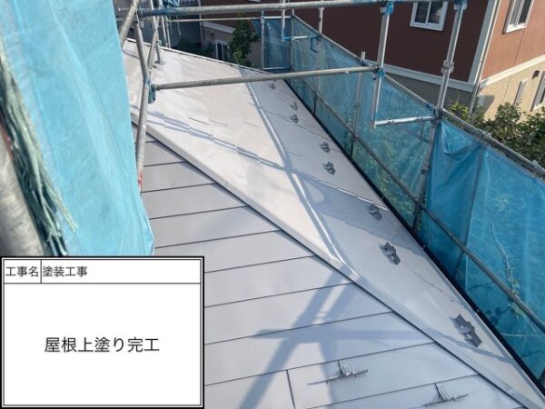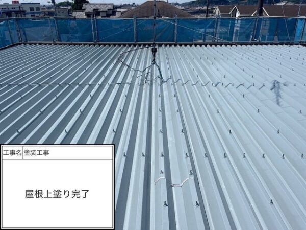 施工内容屋根塗装高耐久遮熱フッ素塗装工事外壁塗装高耐久無機塗装工事【屋根塗装・施工の流れ】屋根塗装工事グレード:遮熱フッ素塗装使用塗料:水谷ペイント塗料品名:快適サーモF 色:サーモN6グレー