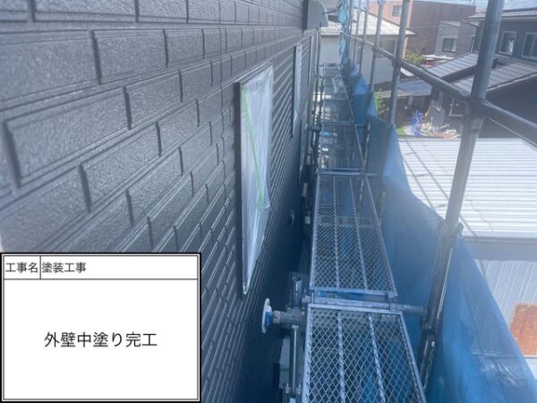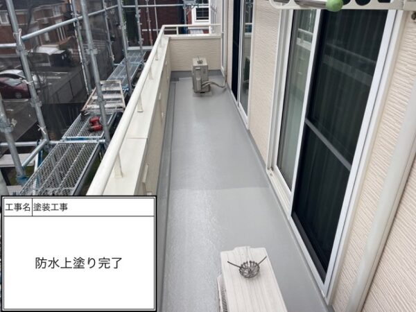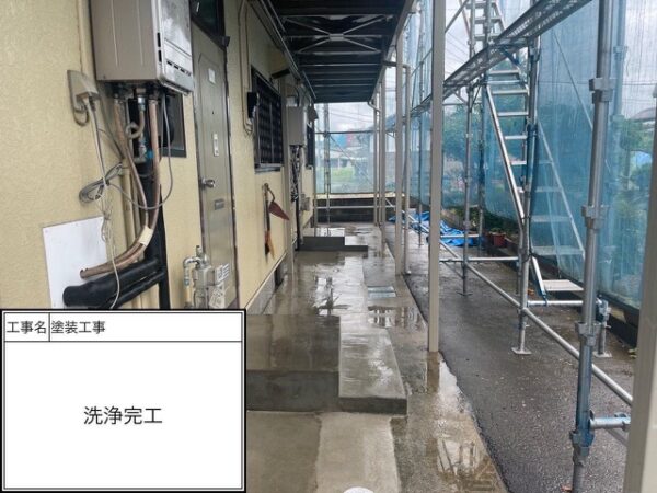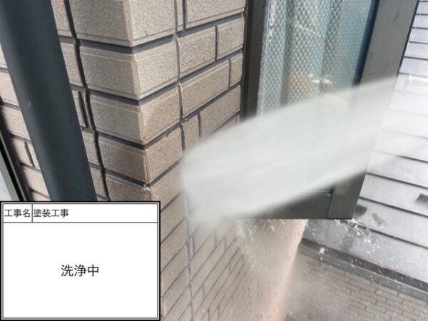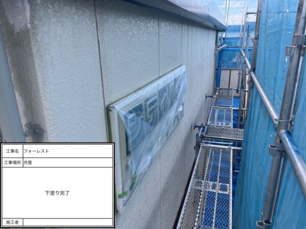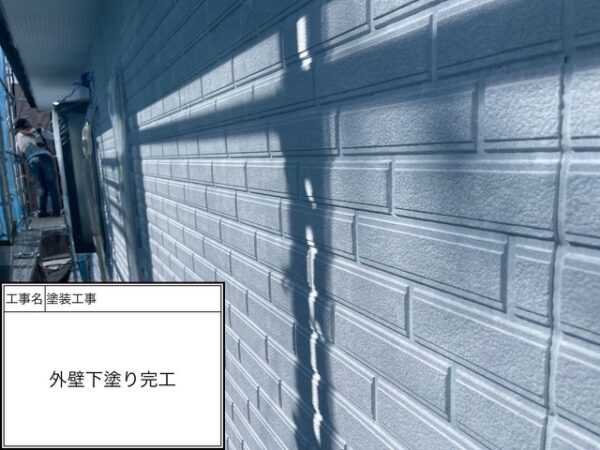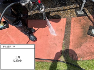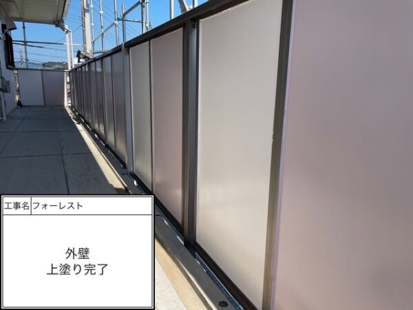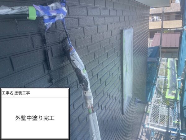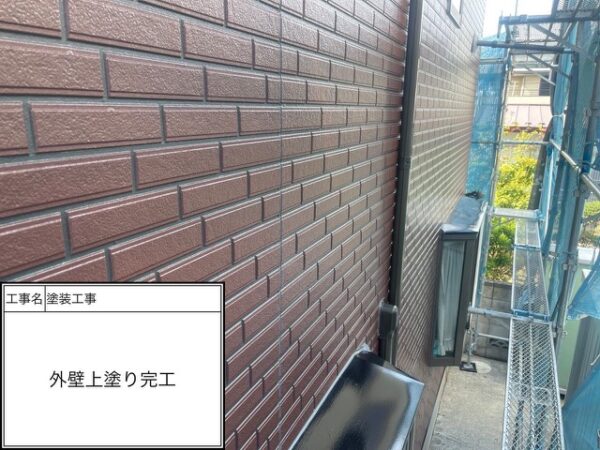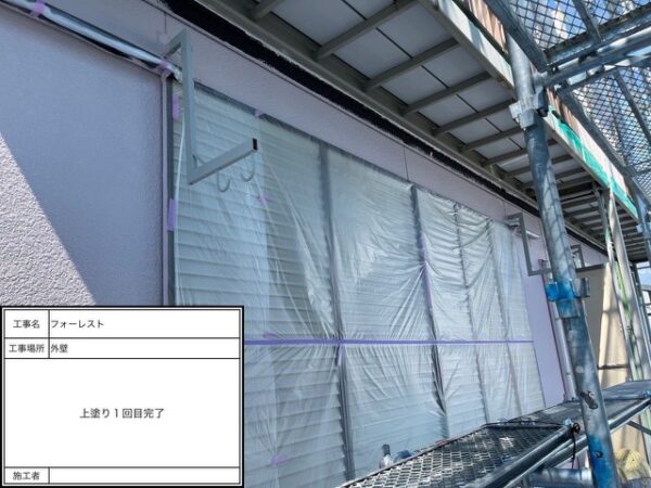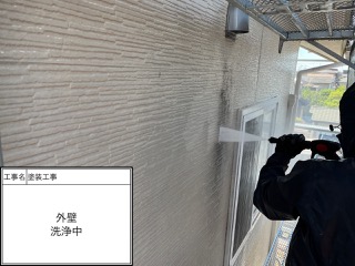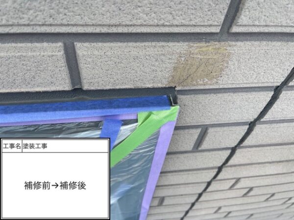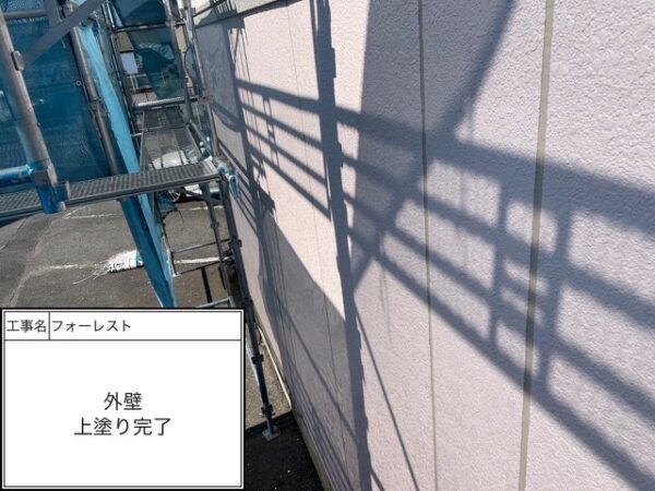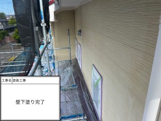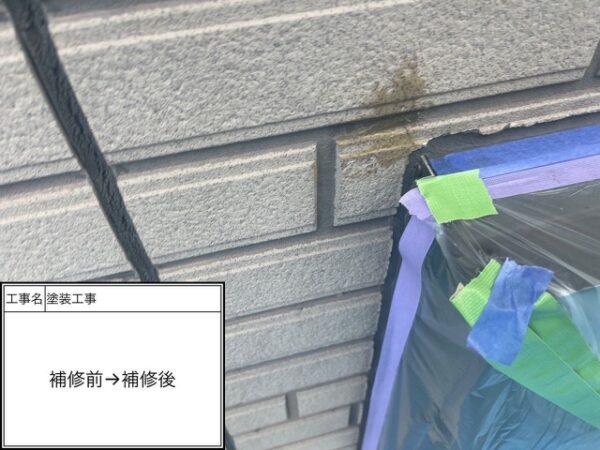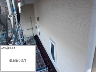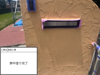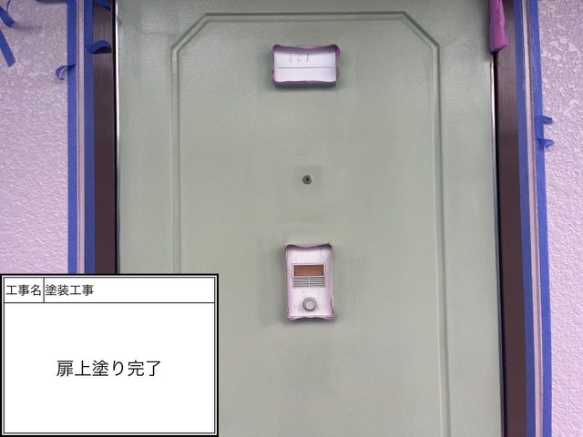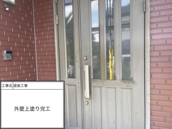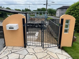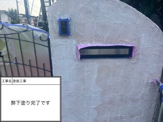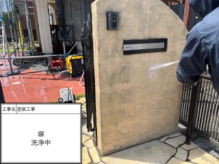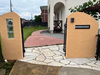 インターホンも完全に塞がないで誰かが来たときに分かるように全部ビニールしないように工夫して養生をしています。塀のお色も外壁とお家の雰囲気に合った色でお客さんも満足して頂けました。