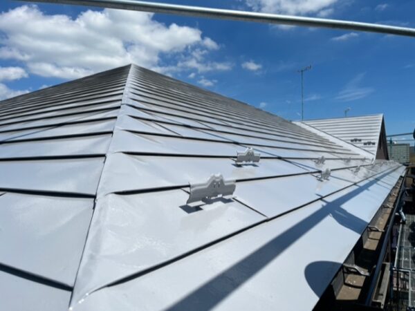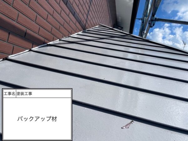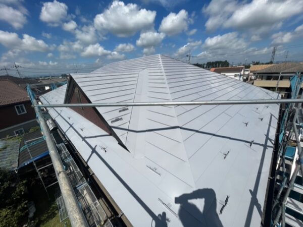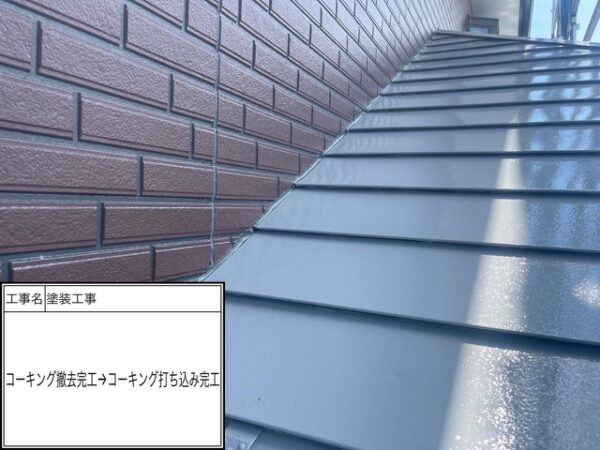 折半屋根のジョイント部分にも雨水の侵入を防ぐためにコーキングを打ちます。完了