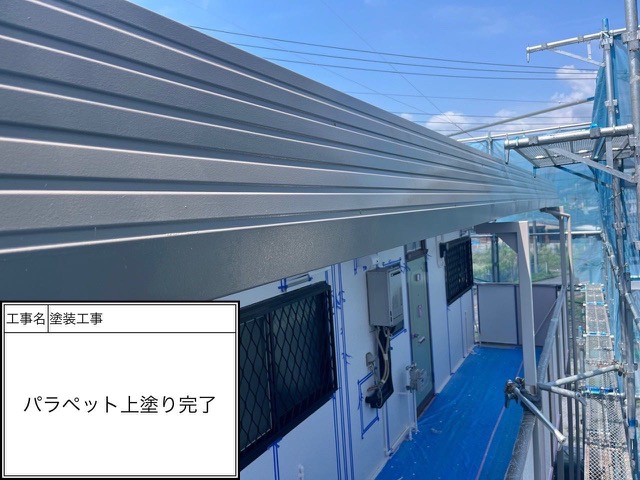 施工内容屋根塗装遮熱塗装工事外壁塗装高耐久遮熱塗装工事【屋根塗装・施工の流れ】屋根塗装工事グレード:遮熱シリコン塗装使用塗料:アステックペイント塗料品名:スーパー遮熱サーモシリーズ 色:クレタグレー