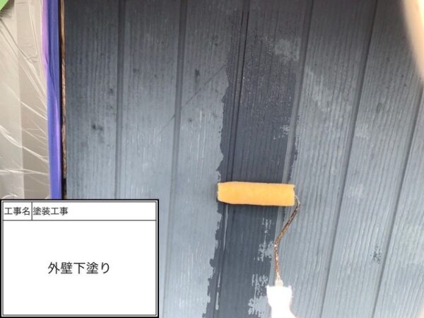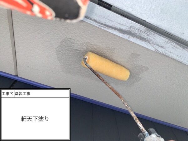 軒天もサイディングと同じ素材なので外壁と同じ下塗り材を入れて行きます。