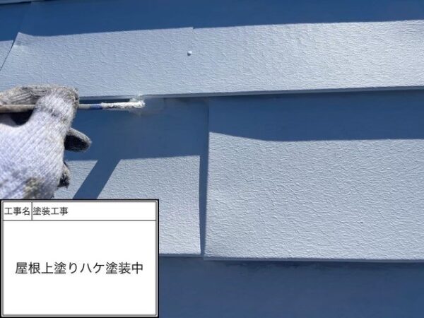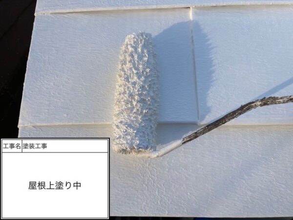 これにより隙間に下塗りが入り、中塗り、上塗りが密着して水滴を弾き屋根の隙間に水が溜まらない仕組みになって屋根の湿気対策が出来て屋根を長持ちする状態を作れます。