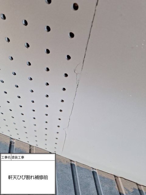 軒天ひび割れ補修前