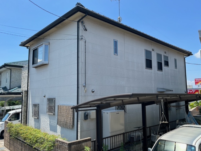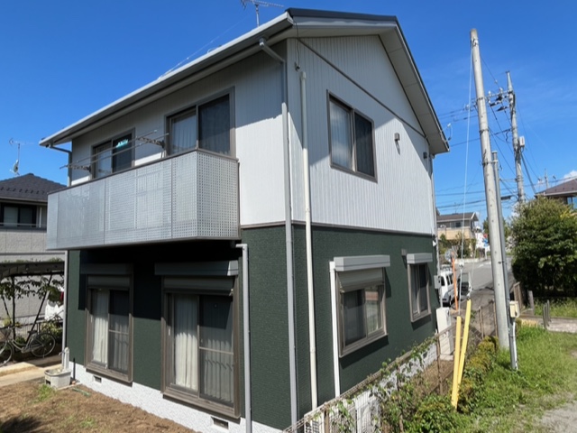 ※軒天が白というのは単なる固定概念で最近の建築物は割と暗めが流行りで、塗り替え塗装工事で暗めの色を入れれば今風のお家に生まれ変わります。