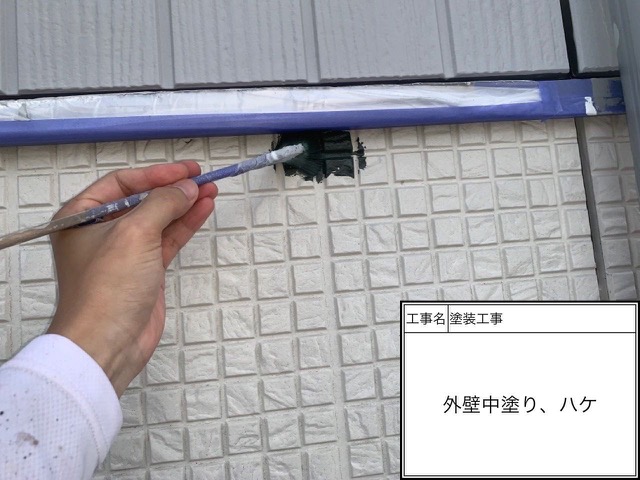下塗りと同様に中塗りの材料でもハケを入れて行きます。