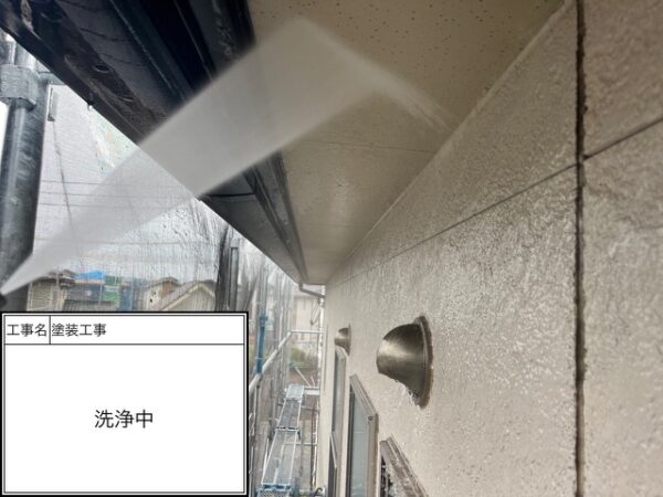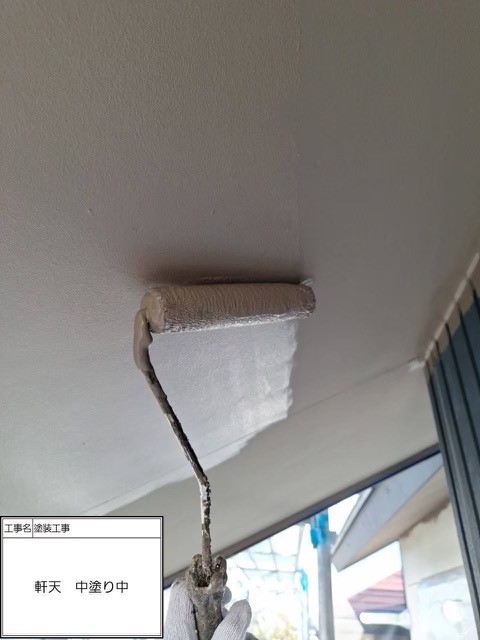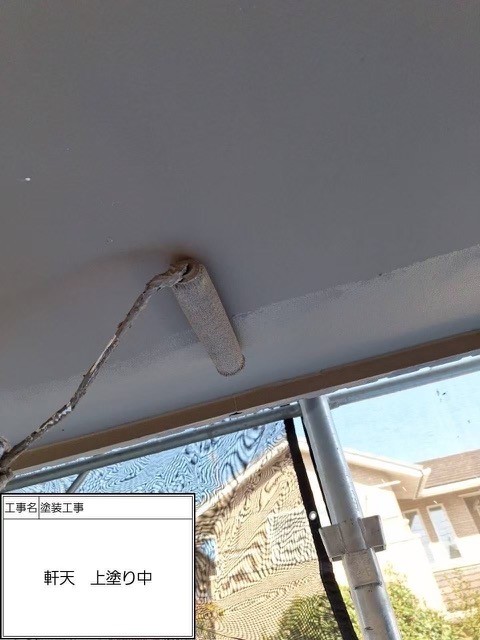 軒天2回目塗装中