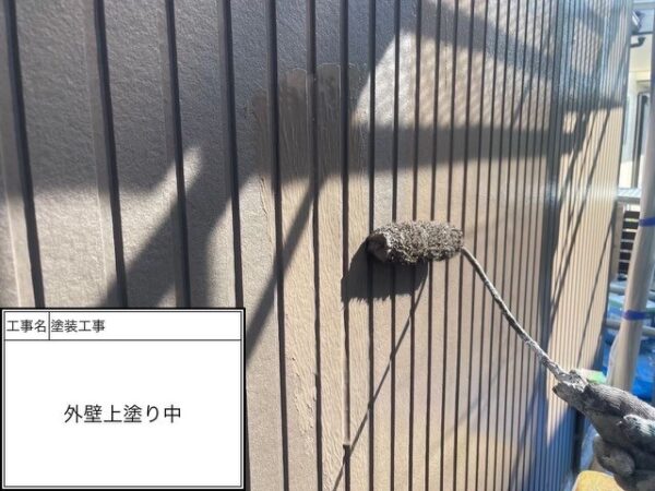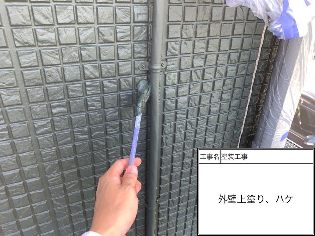 上塗りハケ塗装中