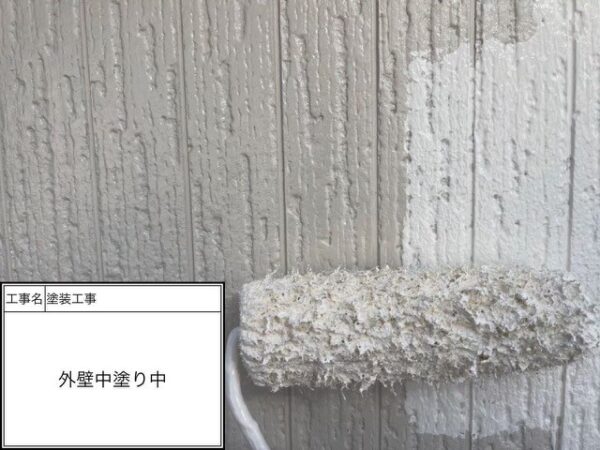 全体にハケを入れたので中塗りのローラーをして行きます。