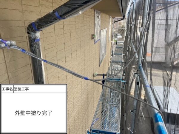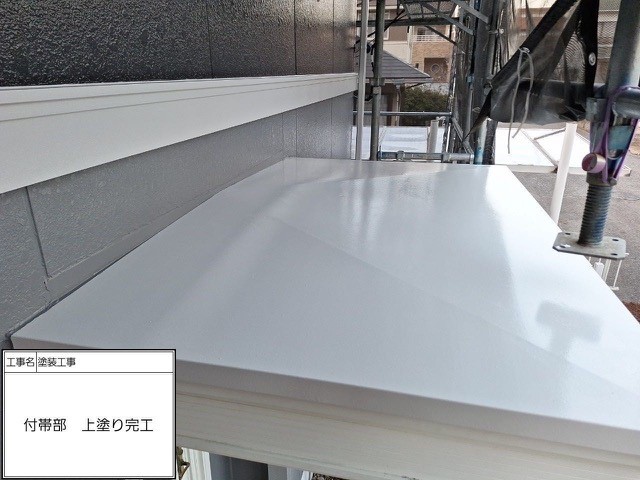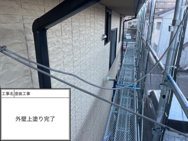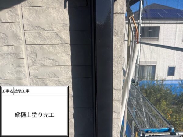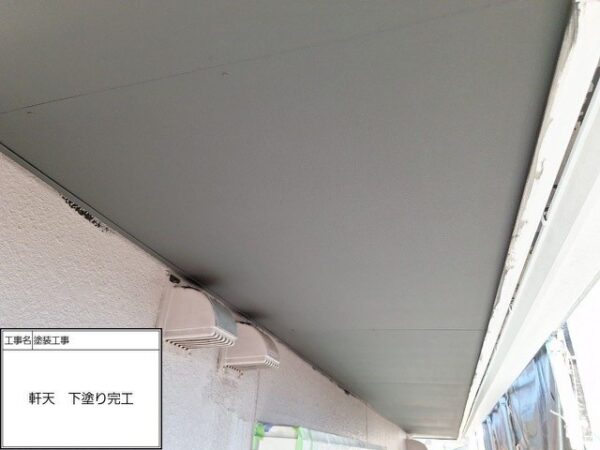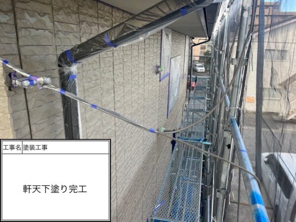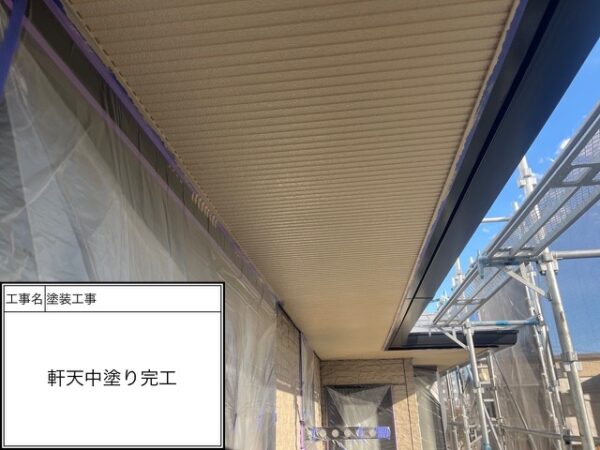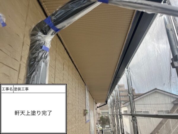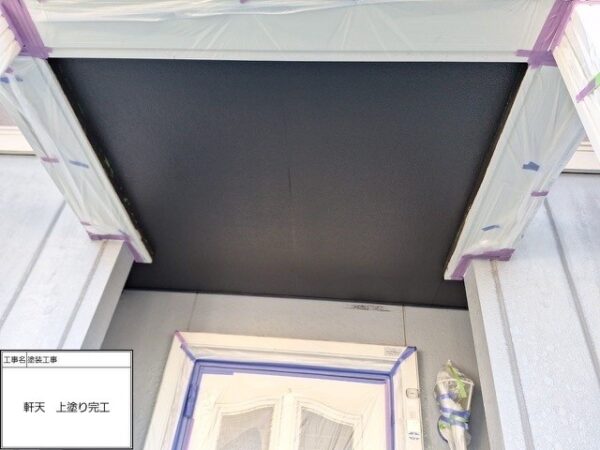 2回目※軒天塗装において色が濃くなればなるほど技術が必要です。とにかくなれていない業者だとムラだらけでひどくなります。下請け施工業社はまず元請から依頼されたら嫌がる事間違いなしです。ハローペイントなら何軒も暗い色やこだわりの色で仕上げてきてますので御手のものです、喜んで承ります。