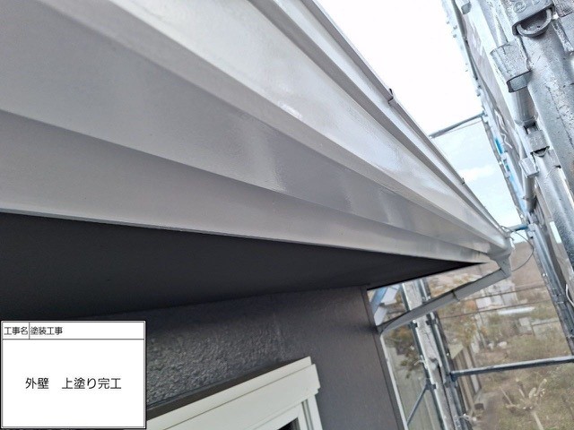 軒天アクセントカラー塗装※軒天が白というのは単なる固定概念で最近の建築物は割と暗めが流行りで、塗り替え塗装工事で暗めの色を入れれば今風のお家に生まれ変わります。白じゃ実現出来ない雰囲気がお好みの方はお問い合わせお待ちしております。