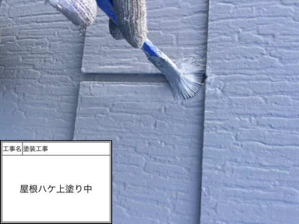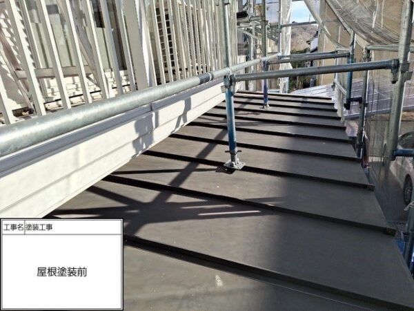 施工内容屋根塗装高耐久無機遮断熱塗装工事外壁塗装高耐久無機遮断熱塗装工事【屋根塗装・施工の流れ】屋根塗装工事グレード:無機遮熱塗装使用塗料:プレマテックス