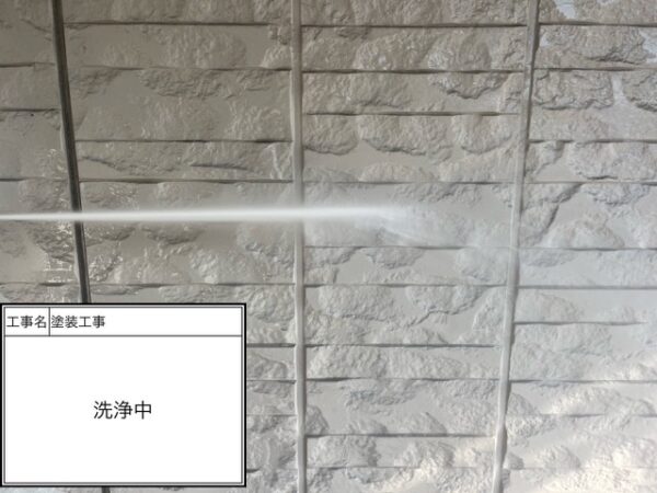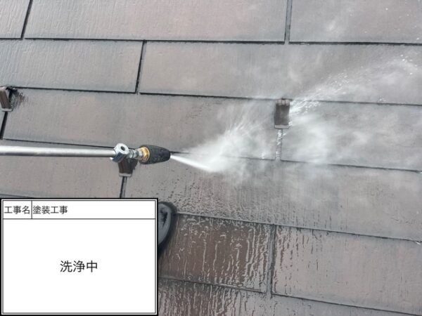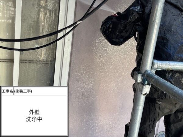 外壁を塗る前にしっかりと洗浄を行いチョーキングやコケを落として塗装作業に向かいます。