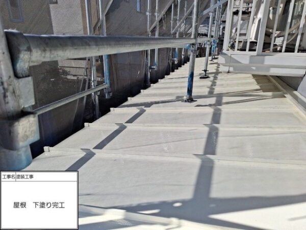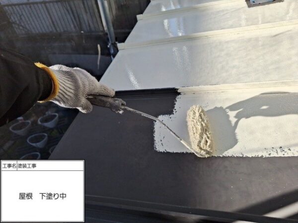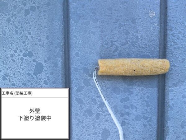 下塗り材では錆止め効果がない為エポキシ系の強い錆止めを下塗り材を塗る前に塗装します。