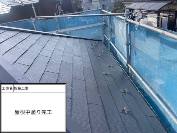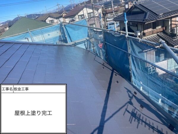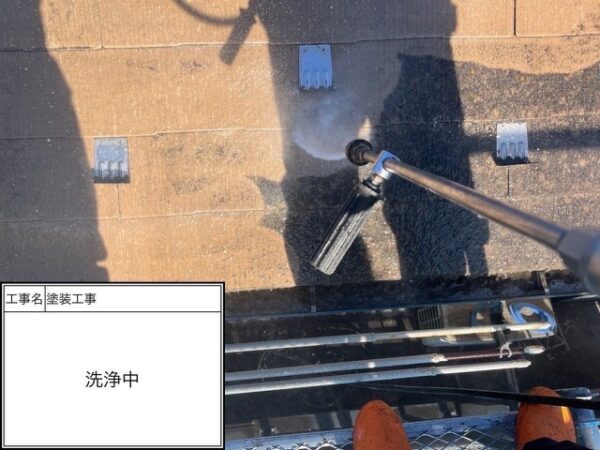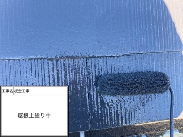 吸い込みが1回目と比べ落ち着き屋根に下塗り材が浸透したのが分かります。