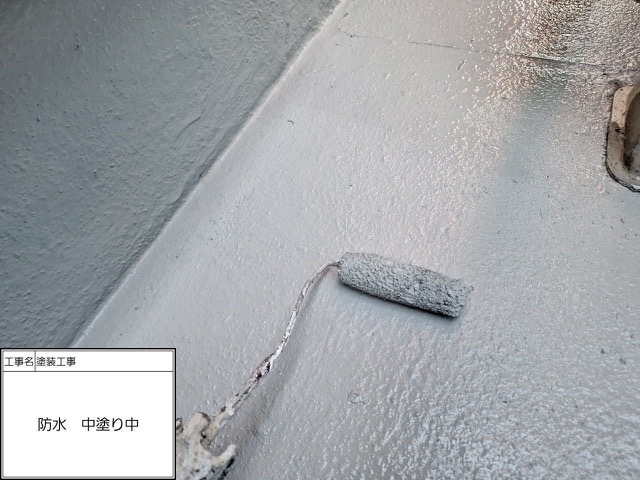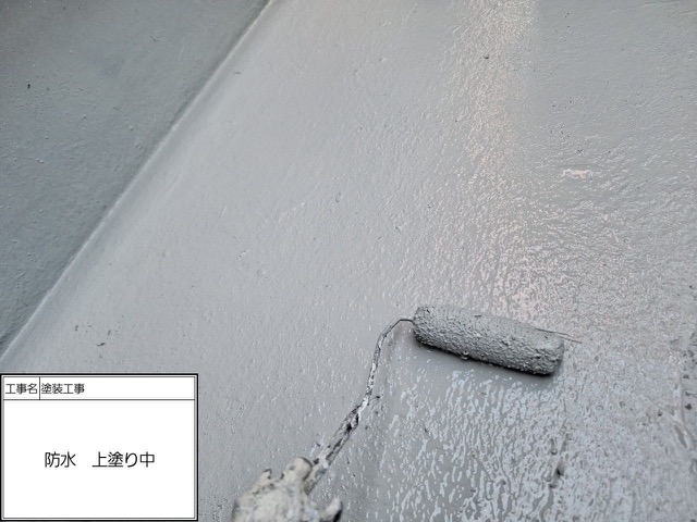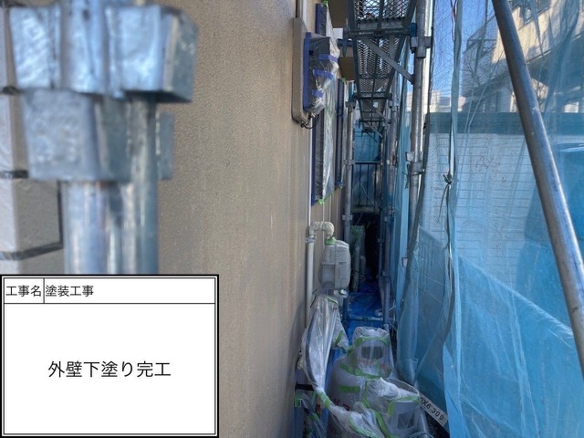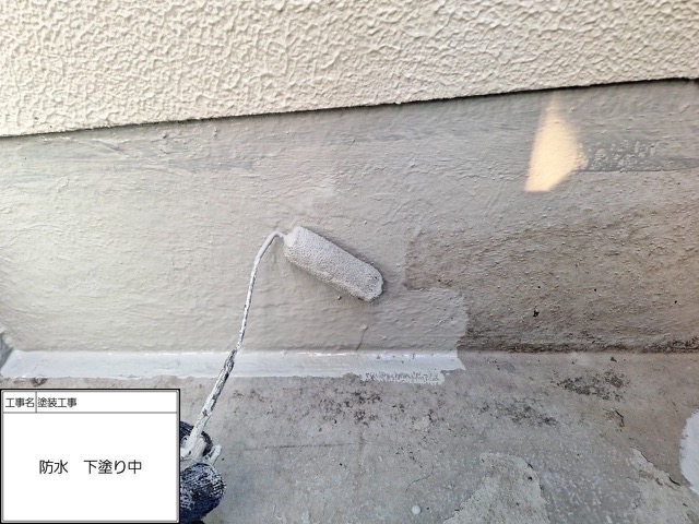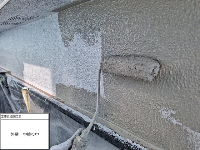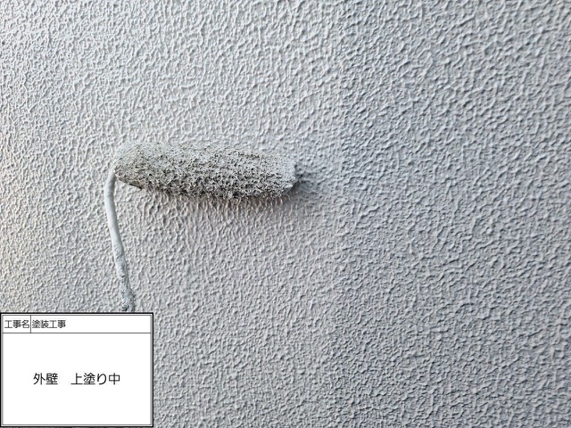 下塗り1回目に弾性系を塗っているので更にここから強靭な膜圧と耐久性に優れている高弾性系の塗料の施工を行いました。
