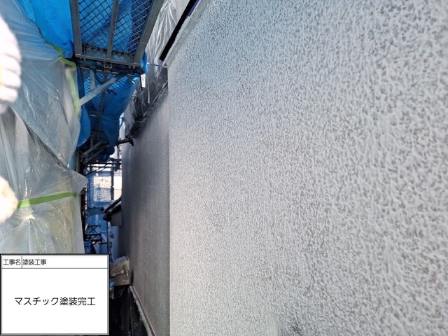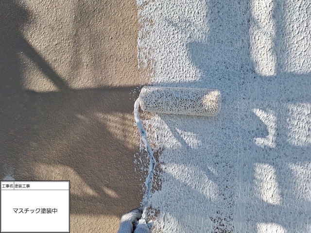 マスチック施工は塗膜地震が伸び縮みするのでヒビ割れが少ないのが特徴です。