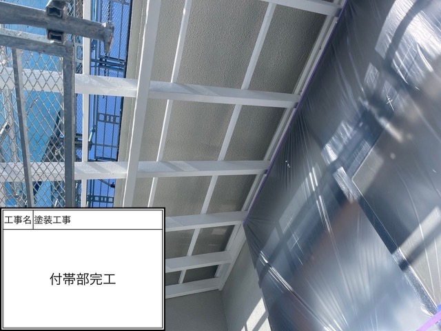 この施工の注意点としましては塗料の飛散が激しいので周囲の養生や塗料飛散の配慮が出来ているか