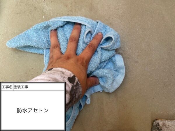 防水面の汚れなどを研磨して更に密着も高める作業です。