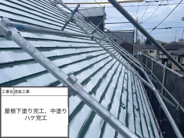 【屋根塗装・施工の流れ】屋根塗装工事グレード:遮熱無機塗装使用塗料:プレマテックス塗料品名:タテイルαサンクール 色:エコディープグレー