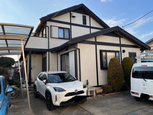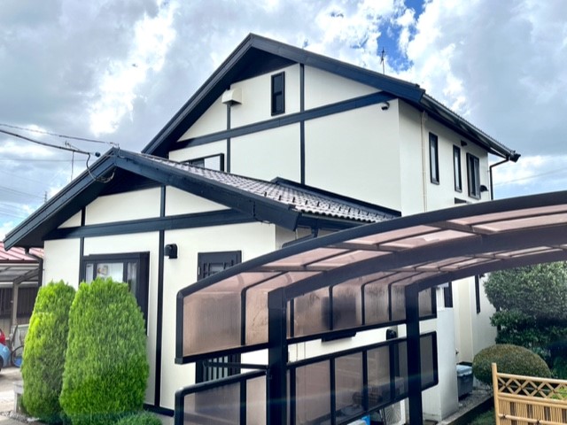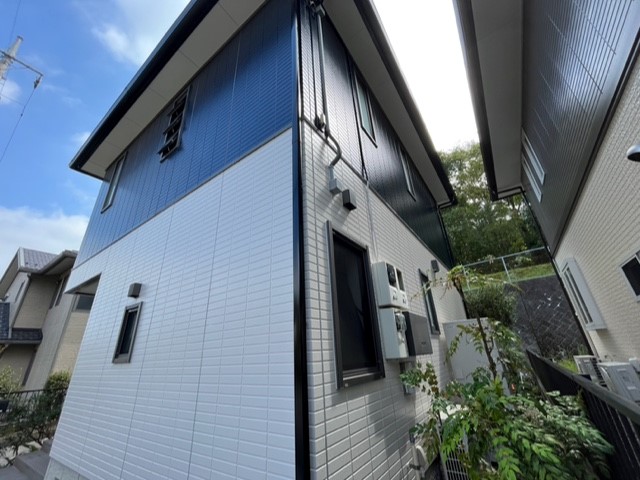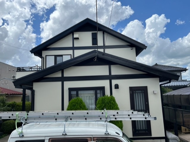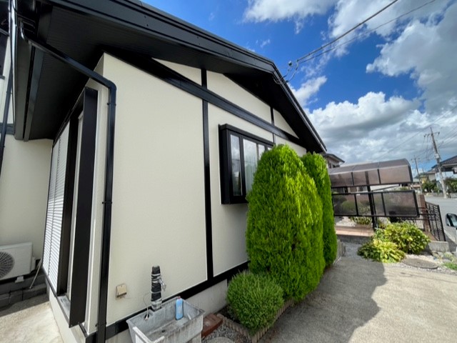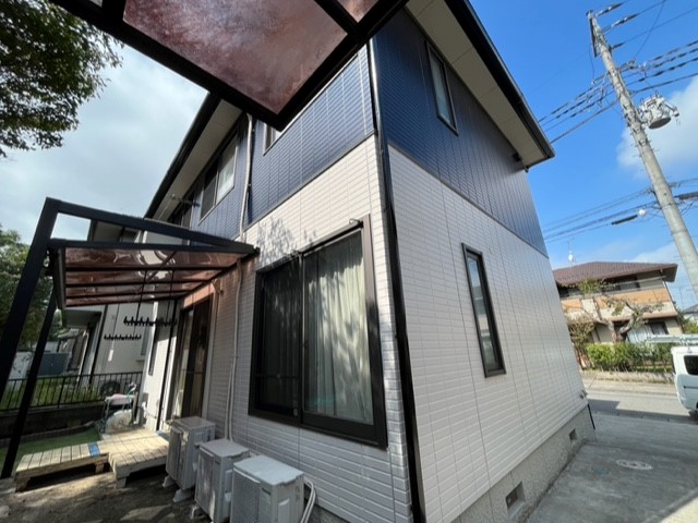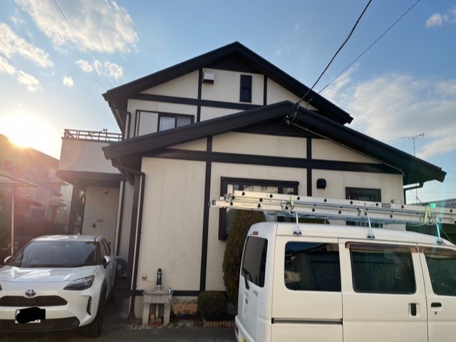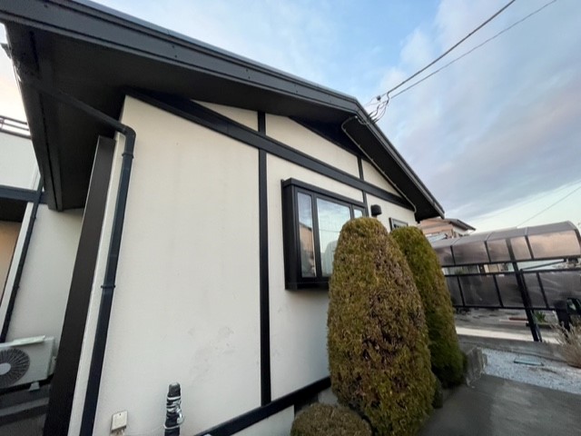 ※軒天が白というのは単なる固定概念で最近の建築物は割と暗めが流行りで、塗り替え塗装工事で暗めの色を入れれば今風のお家に生まれ変わります。