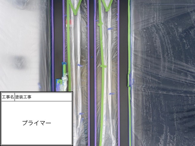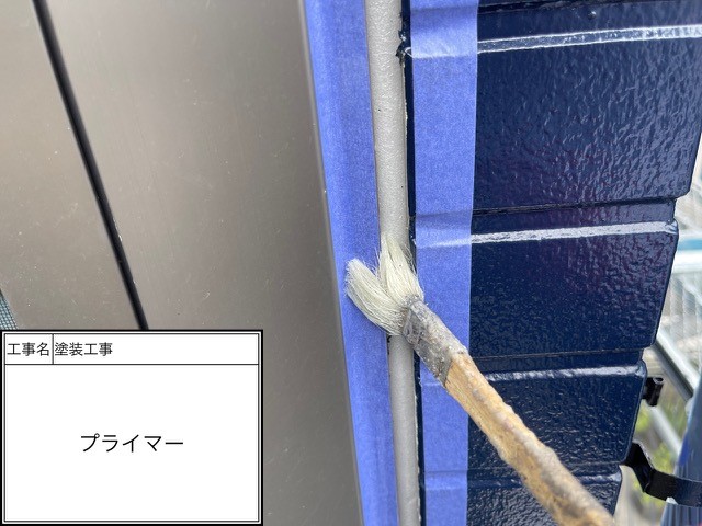 外壁の下塗りに使用したのはRSプライマーと言う材料で、水性で臭いも少なく幅広い旧塗膜にも完全密着する塗料です。