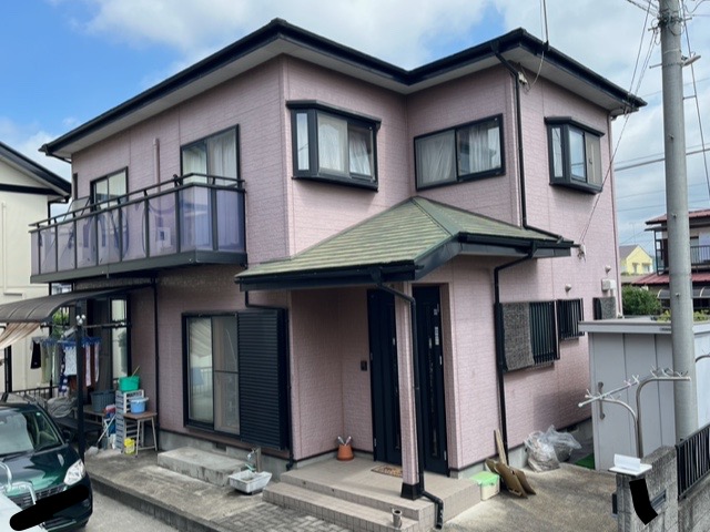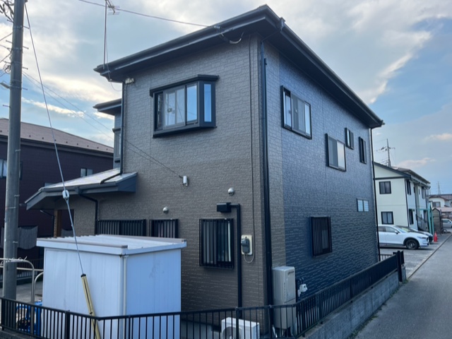 外壁塗装工事グレード:無機塗料使用塗料:プレマテックス塗料品名:タテイルα色:メイン 75−30B 色分け部分 22-40B 柱部分 17-40H