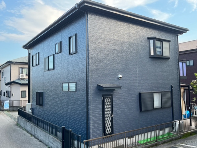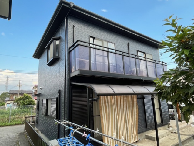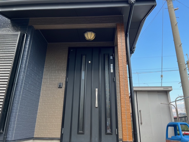 軒天アクセントカラー塗装※軒天が白というのは単なる固定概念で最近の建築物は割と暗めが流行りで、塗り替え塗装工事で暗めの色を入れれば今風のお家に生まれ変わります。白じゃ実現出来ない雰囲気がお好みの方はお問い合わせお待ちしております。