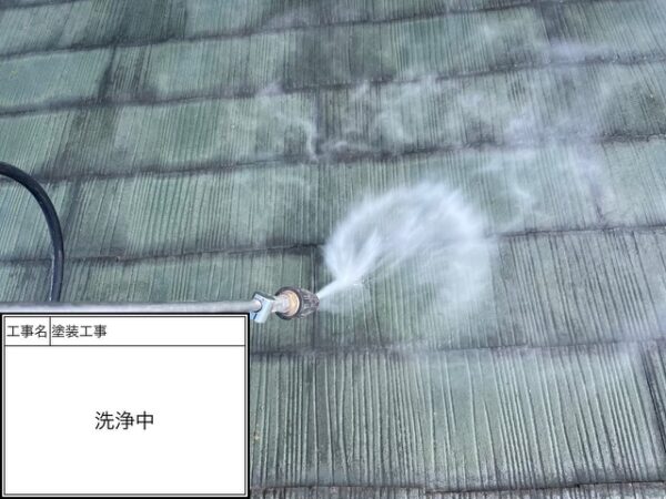 コケや雨汚れを落として塗装が出来る準備をします。