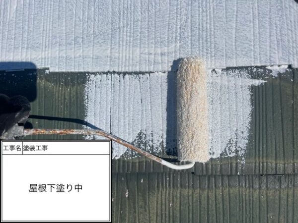 屋根下塗り中