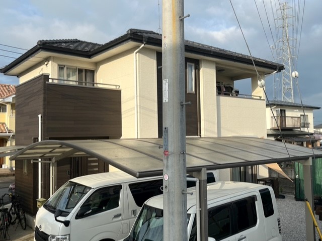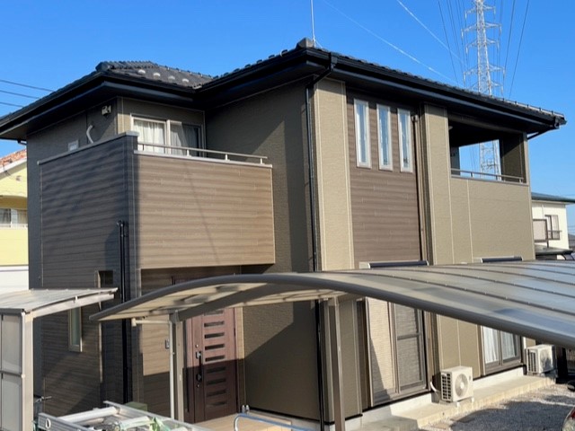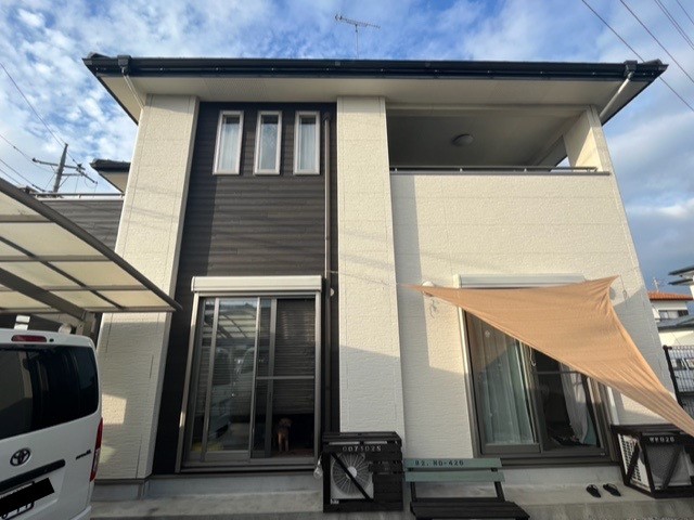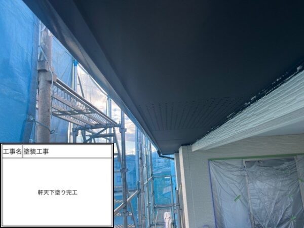 ※軒天が白というのは単なる固定概念で最近の建築物は割と暗めが流行りで、塗り替え塗装工事で暗めの色を入れれば今風のお家に生まれ変わります。