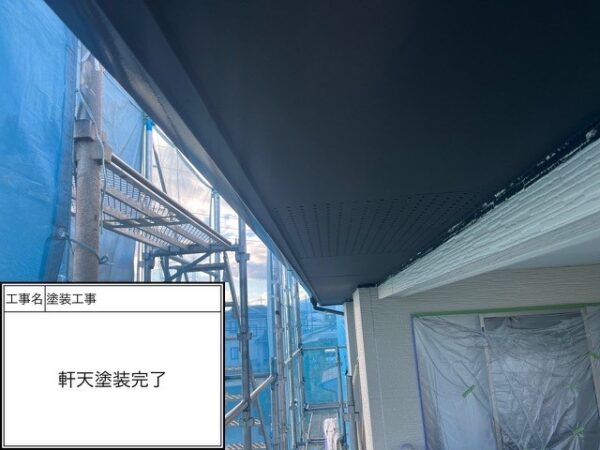 防カビ材の性能がある塗料で塗装を行い、更に軒天の色が黒なので汚れも目立ちづらくなり美観を保ちます。