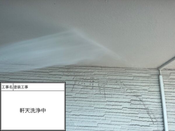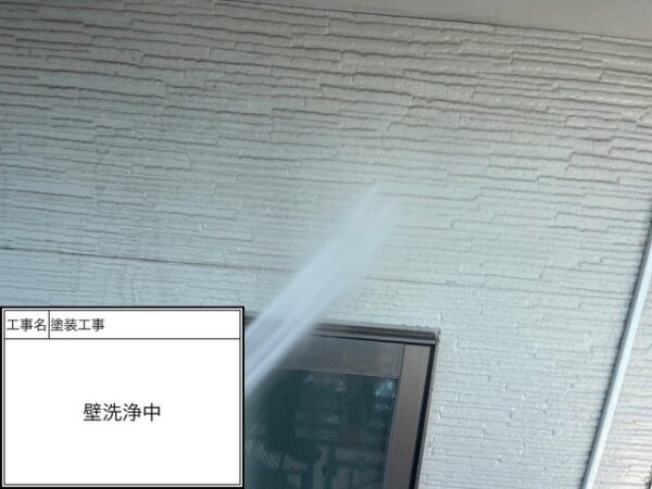 外壁を塗る前にしっかりと洗浄を行いチョーキングやコケを落として塗装作業に向かいます。