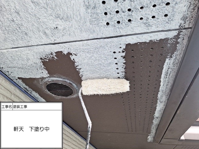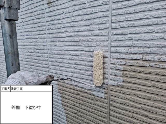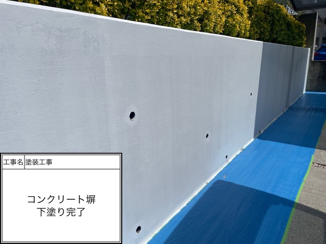 お客様に分かる様に乾く前に下塗り完工の写真を撮っているので
