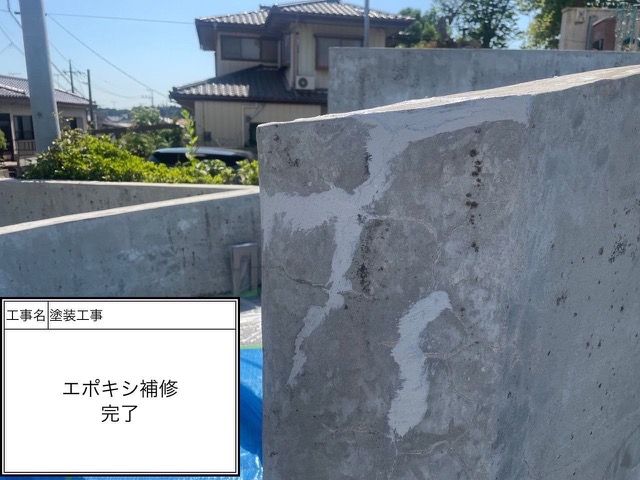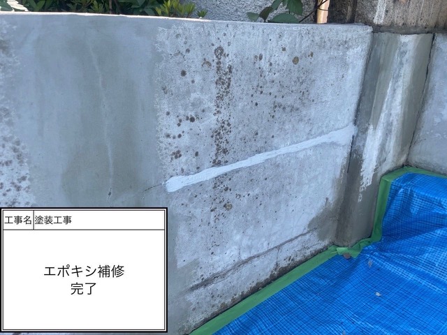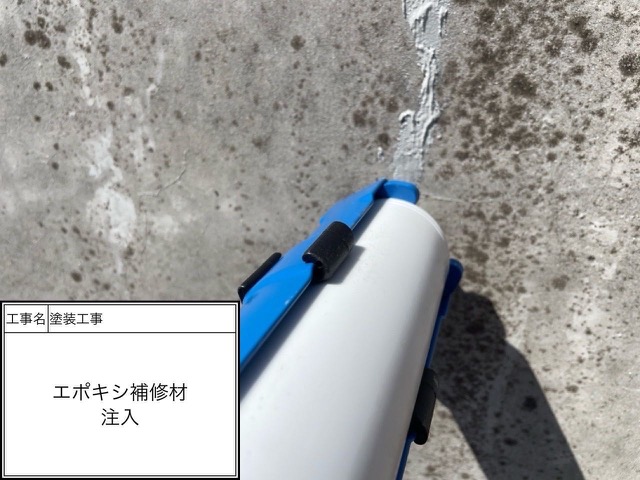 この補修材は変成エポキシ系樹脂でVカットやUカットが不要なので粉塵が舞ってご近所トラブルにもなりません。