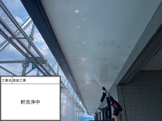 防カビ入りの材料で軒天を塗ったので軒天を守る事が出来ます。
