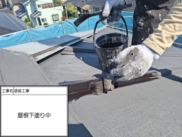 屋根ハケ下塗り中