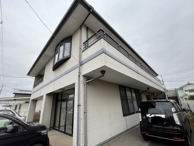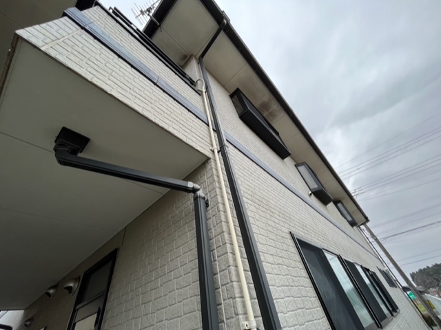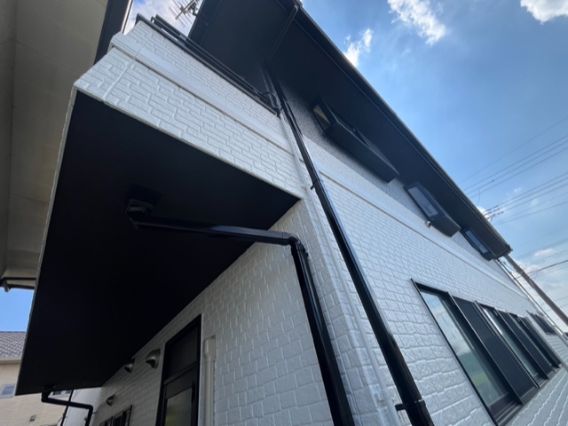 ※軒天が白というのは単なる固定概念で最近の建築物は割と暗めが流行りで、塗り替え塗装工事で暗めの色を入れれば今風のお家に生まれ変わります。
