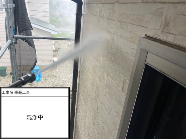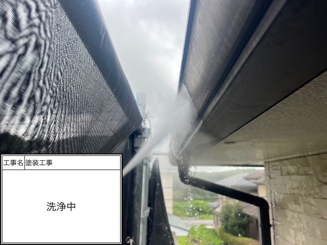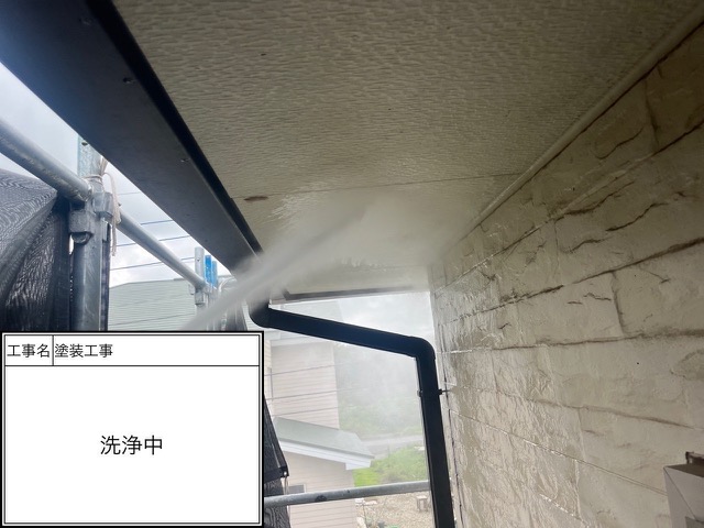 ハローペイントでは土間や駐車場の洗浄作業も受けているので気になる方はご連絡下さい。軒天塗装1回目